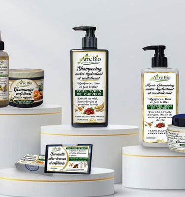 Chez arre bio, chaque produit est conçu avec passion, mêlant ingrédients biologiques et respect de votre peau pour une beauté authentique.